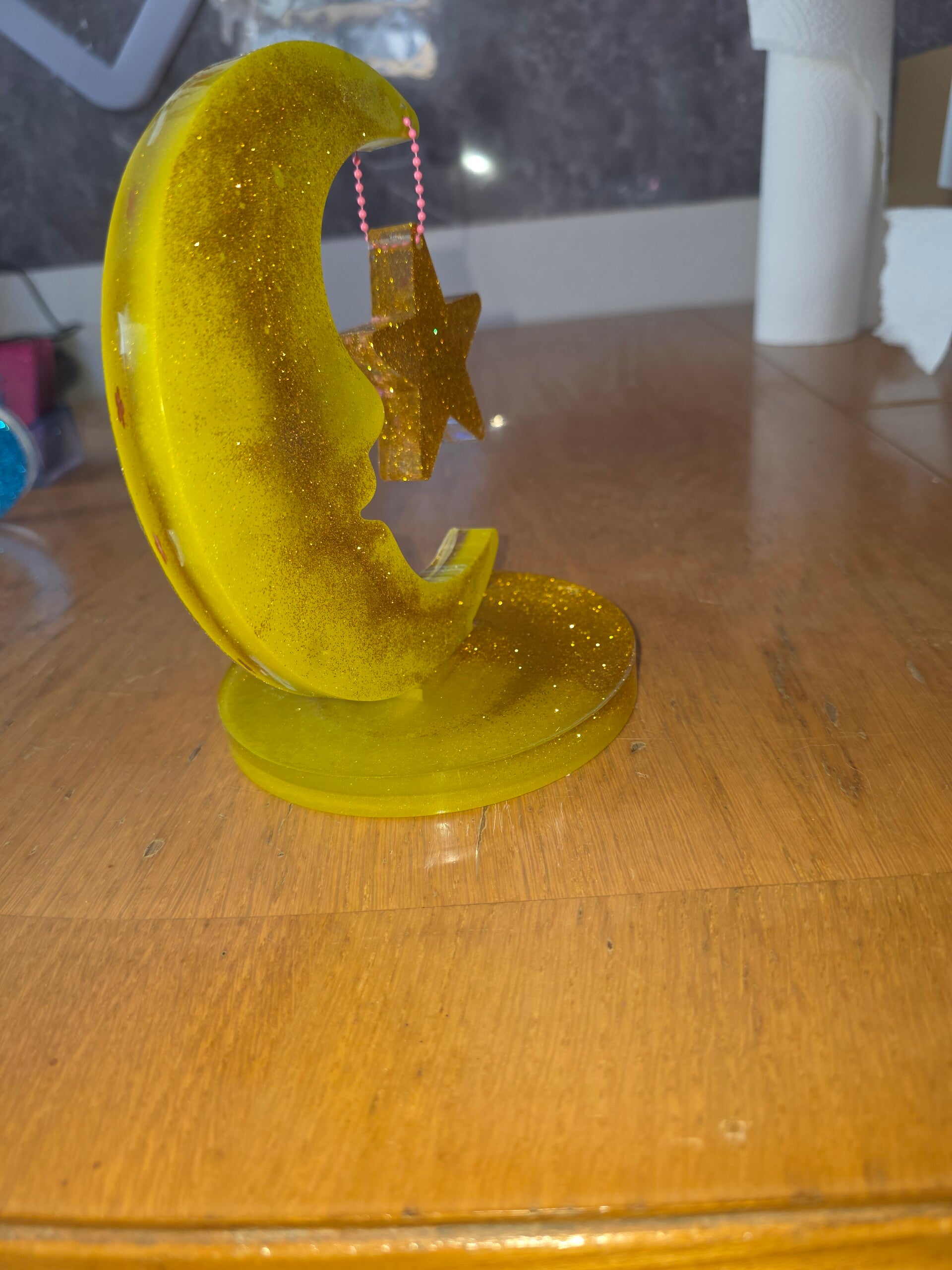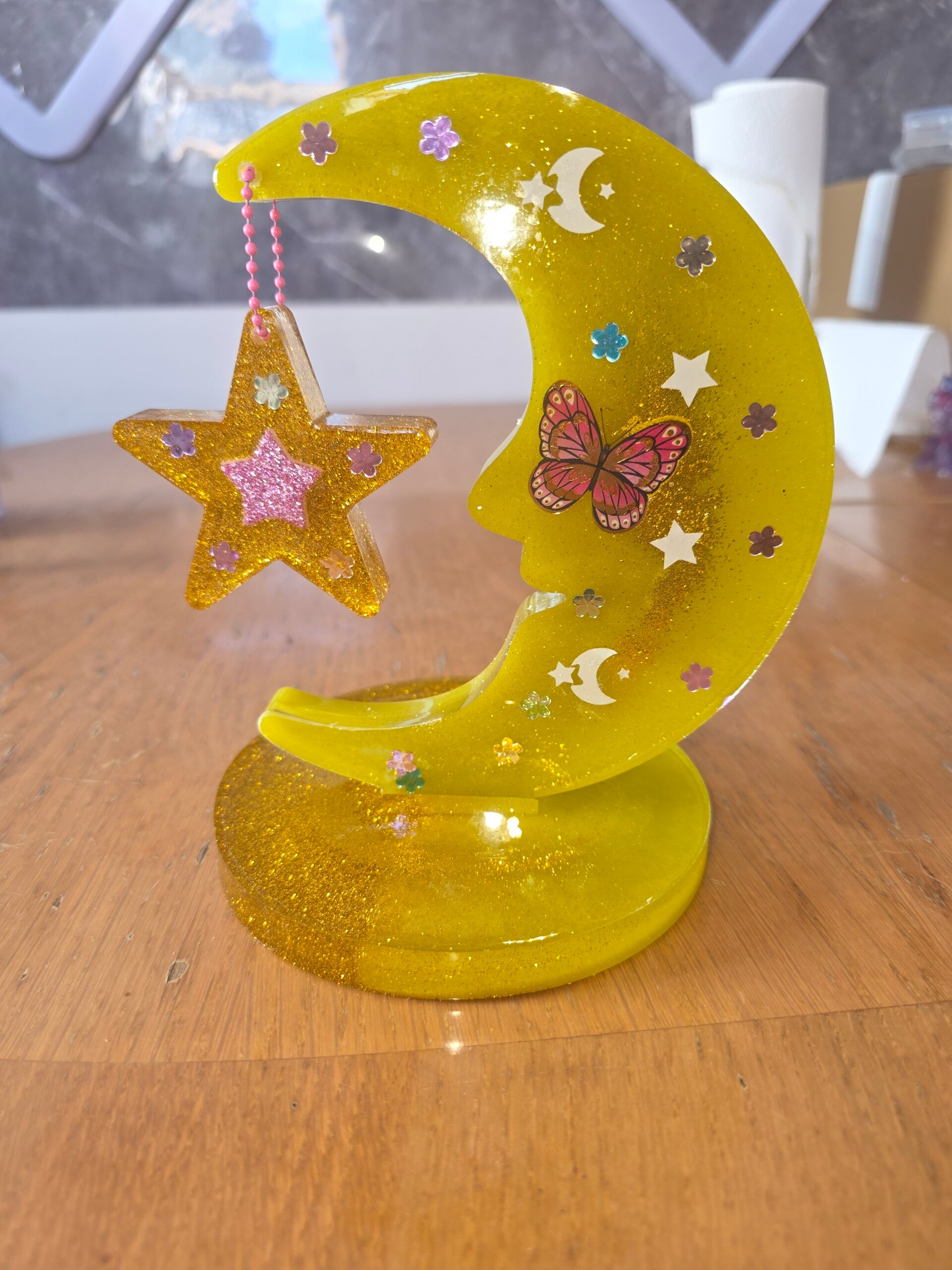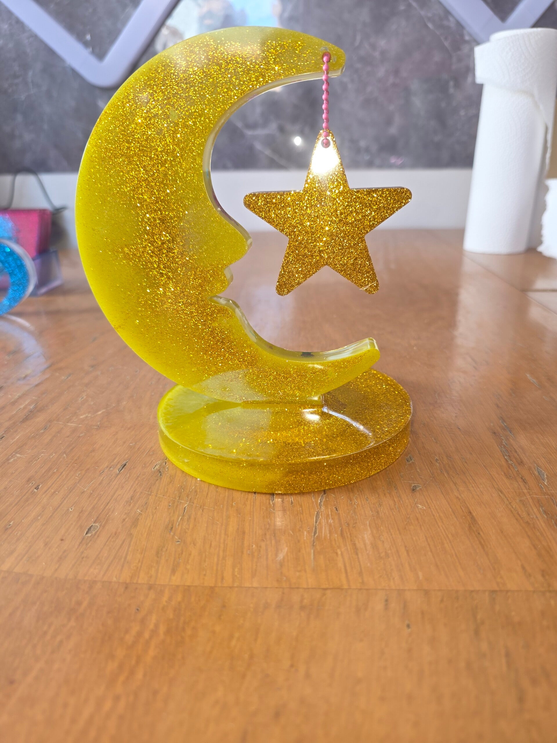 Mond mit Stern aus Harz verschiedene Farben mit oder ohne Glitzer personaliesierbar