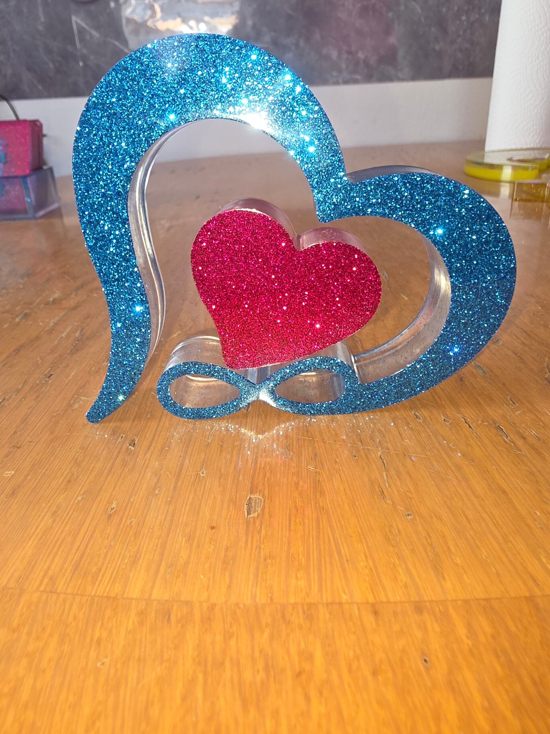 Schönes Herz mit Unendlichkeitszeichen und kleinem Herz in verschiedenen Farben mit oder ohne Glitzer